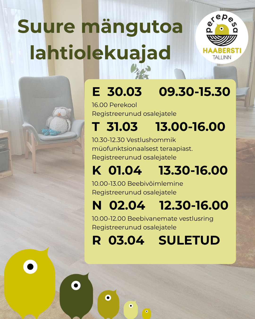 Haabersti Perepesa lahtiolekuajad 30.03-03.04