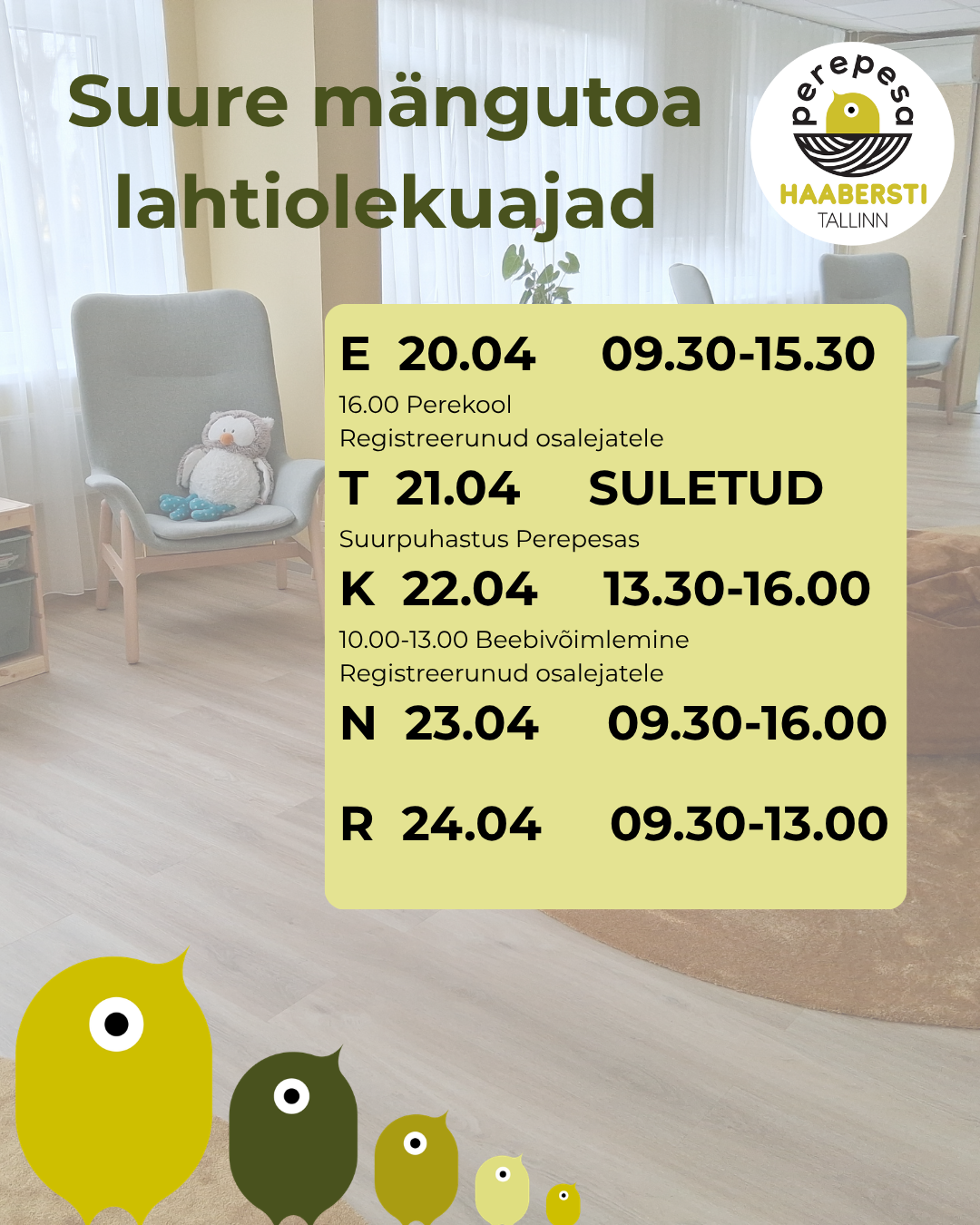 Järgmisel nädalal ootame teid Haabersti Perepesa mängutuppa: