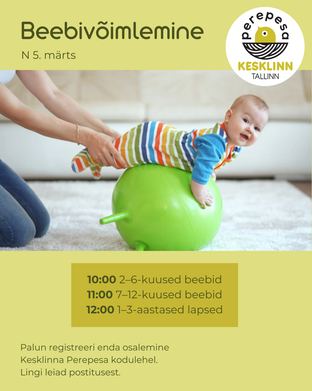 Broneeringu kättesaamisel kinnitame beebivõimlemise koha e-kirja teel.
