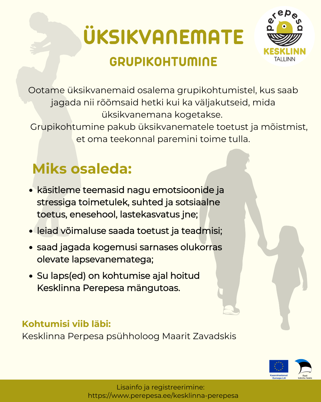 Üksikvanemate kohtumised on mõeldud Tallinna linna elanikele ning osalemise eest tasub Tallinna linn.