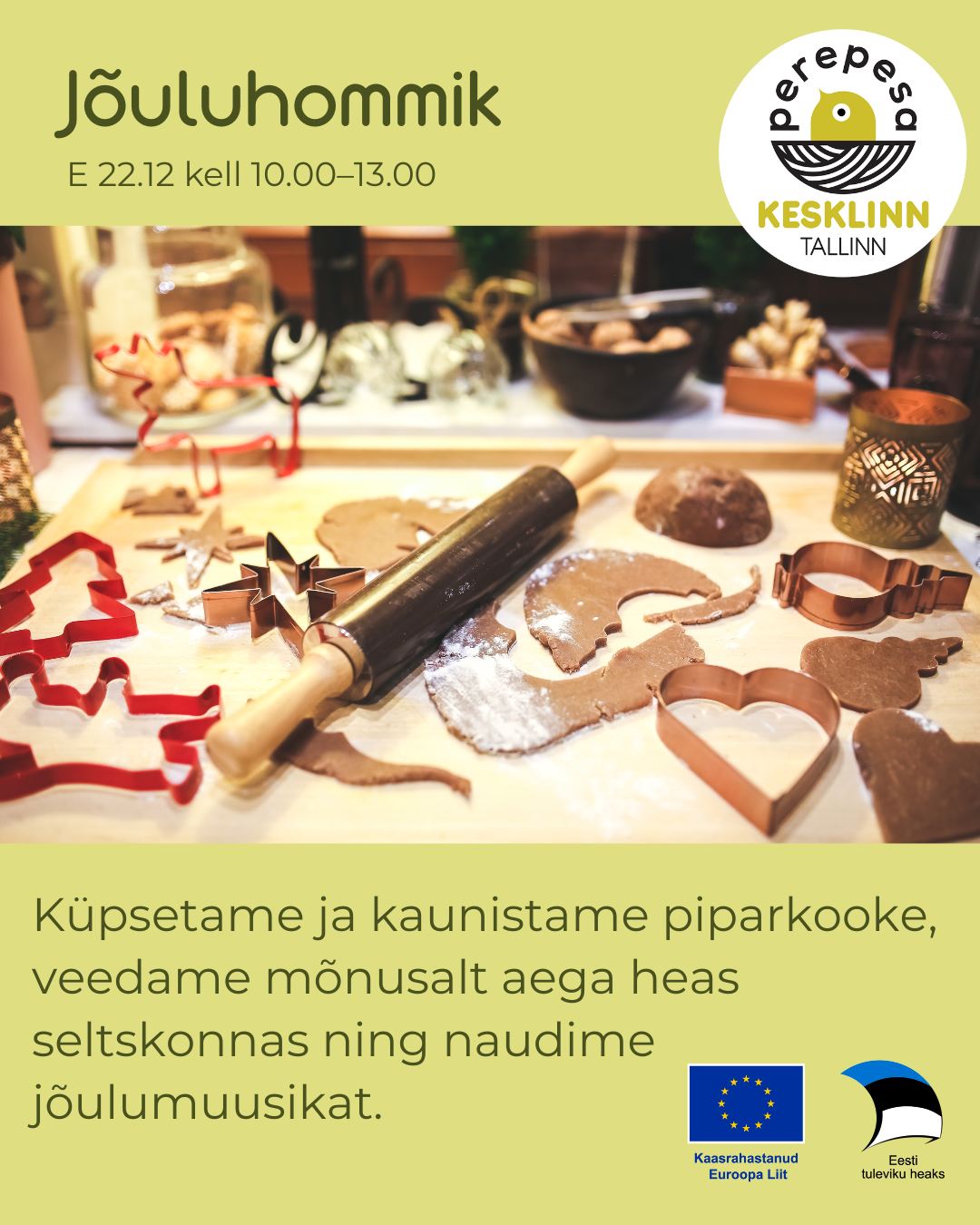 22.12 kutsume kõiki peresid mõnusale jõuluhommikule, kus veedame aega mõnusas õhkkonnas. Koos küpsetame ja kaunistame piparkooke, kuulame jõululaule ning naudime lihtsalt koosolemist heas seltskonnas.