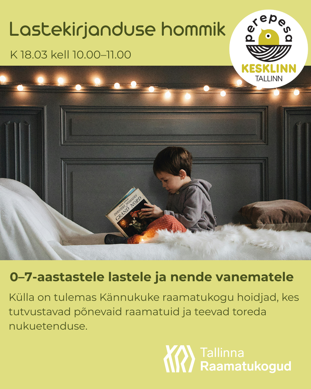 Kolmapäeval, 18. märtsil tulevad meile külla Kännukuke raamatukogu hoidjad. Koos tutvume põnevate raamatutega ning vaatame ka toredat nukuetendust. Ees ootab mõnus ja rahulik kirjandushommik, mis pakub avastamisrõõmu nii väikestele kui ka suurtele.