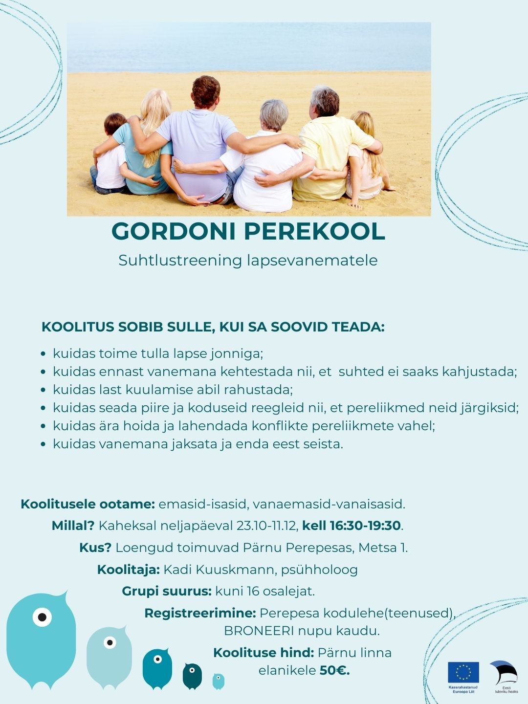 Gordoni suhtlustreening lapsevanematele uus grupp alustab 2026. Täpsem info peagi.