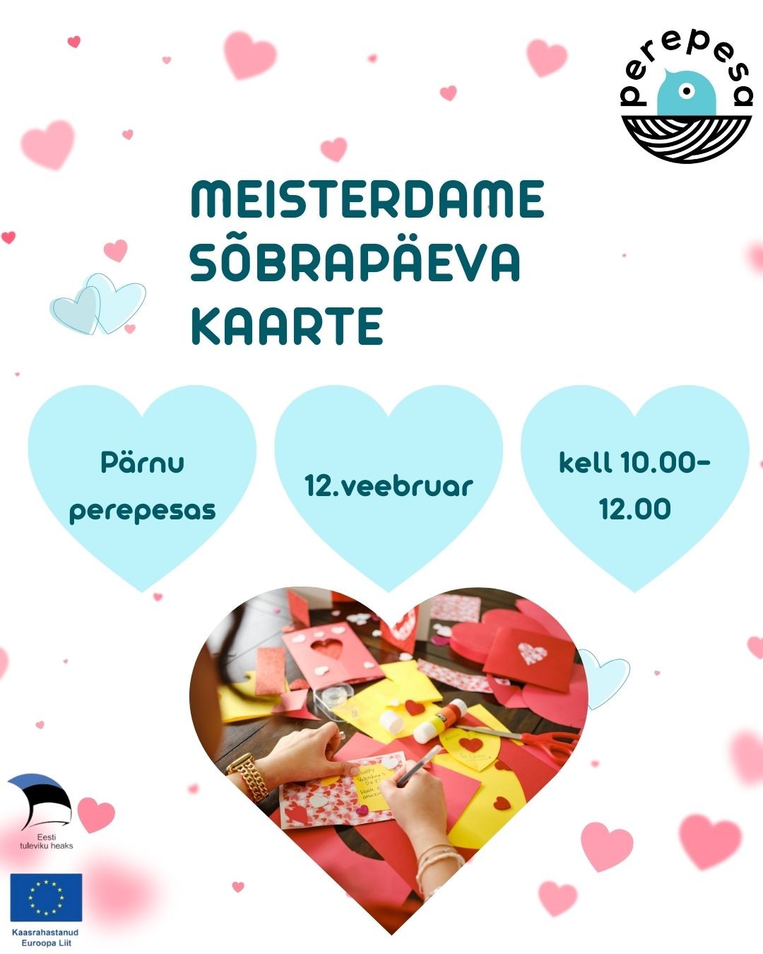 Sõbrapäev on varsti käes ja see toob endaga kaasa hea võimaluse koos olla ja loovalt aega veeta. Ootame sind 12. veebruaril kell 10-12 sõbrapäevakaarte meisterdama.