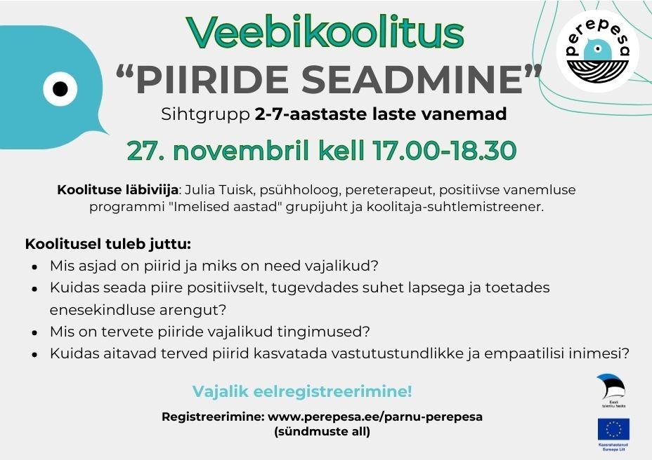 Lapsevanemate veebikoolitus "Piiride seadmine"