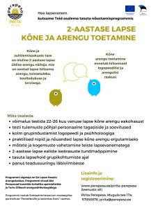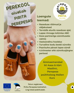 Perekool lapseootel peredele 2-aastase lapse kõne ja arengu toetamine Juhendatud tegevused Avatud mängutuba Beebivanemate vestlusring