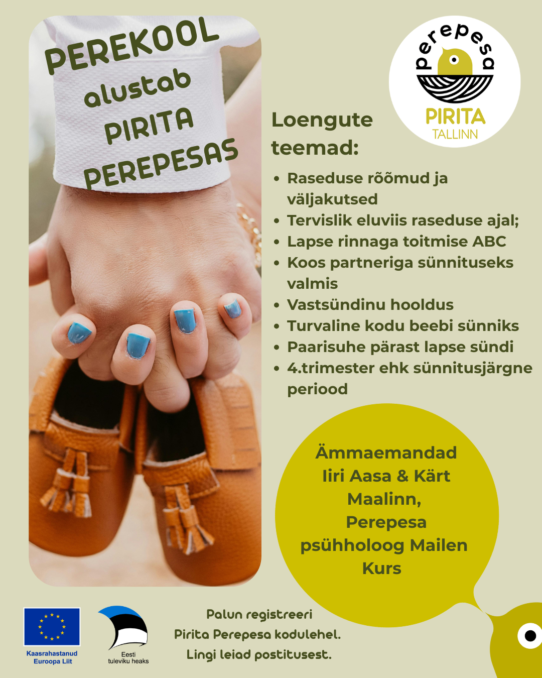 Ootame peresid alates raseduse 20. nädalast liituma Pirita Perepesa Perekooliga.