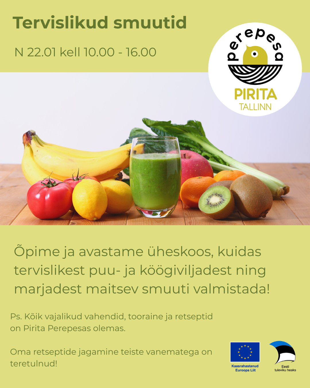 Tule koos perega Pirita Perepessa tervisliku smuuti valmistamise päevale, õpime, avastame ja maitseme koos!