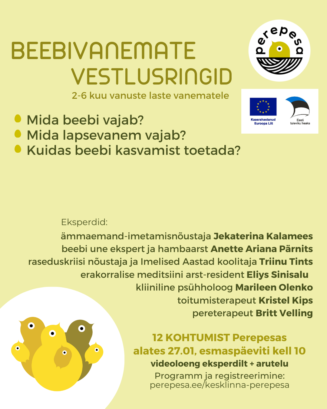 Vestlusringid on mõeldud eelkõige 2- kuni 6-kuu vanuste laste vanematele, andmaks infot esimese eluaasta tähtsusest lapse arengus ning tutvustamaks vanemale võimalusi tagada beebile toetav ja arendav kasvukeskkond. Käsitletavad teemad on seotud beebi arenguliste vajaduste, vanemaks kasvamise ning keskkonna kujundamisega.