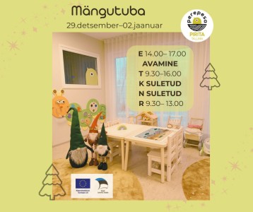 Pirita Perepesa lahtiolekuajad 19.01 - 23.01 15.01. 26 Vestlushommik Turvaliselt internetis Pirita Perepesa lahtiolekuajad 12.-16.jaanuar. Tule 8.01.26 meisterdama! Pirita Perepesa mängutuba 5.-9. jaanuar! Mängutuba 29.12 - 2.01 Pirita Perepesa avapidu 1 / 1 lehest (kokku 7 uudist)