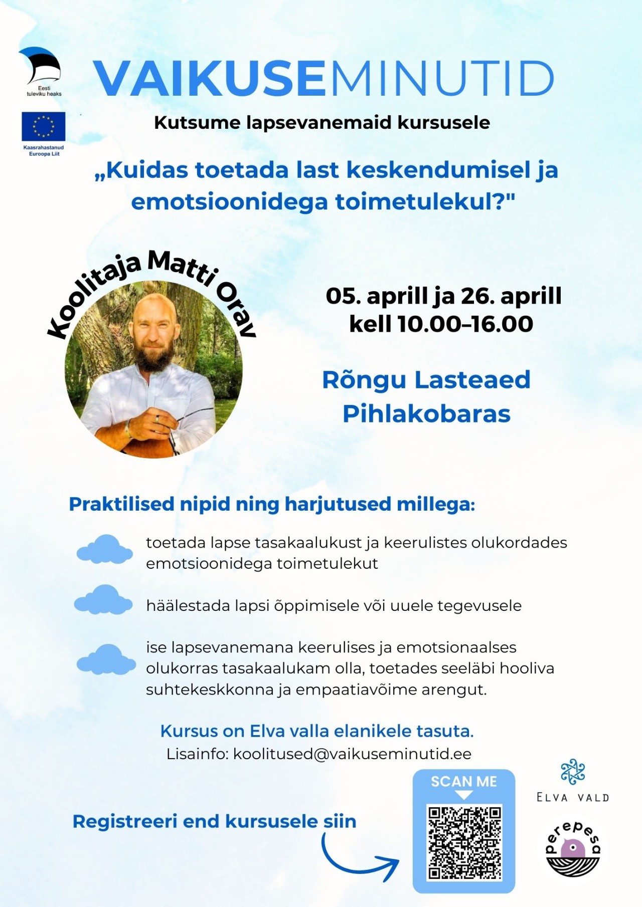 Kutsume teid kursusele „𝐊𝐮𝐢𝐝𝐚𝐬 𝐭𝐨𝐞𝐭𝐚𝐝𝐚 𝐥𝐚𝐬𝐭 𝐤𝐞𝐬𝐤𝐞𝐧𝐝𝐮𝐦𝐢𝐬𝐞𝐥 𝐣𝐚 𝐞𝐦𝐨𝐭𝐬𝐢𝐨𝐨𝐧𝐢𝐝𝐞𝐠𝐚 𝐭𝐨𝐢𝐦𝐞𝐭𝐮𝐥𝐞𝐤𝐮𝐥?"