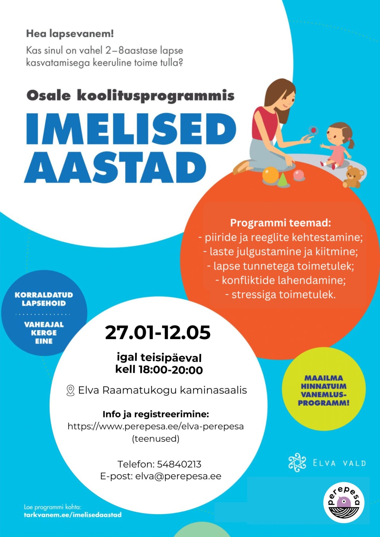 Vanemlusprogramm "Imelised aastad" on Elva valla elanikele (rahvastikuregistri järgi) TASUTA.