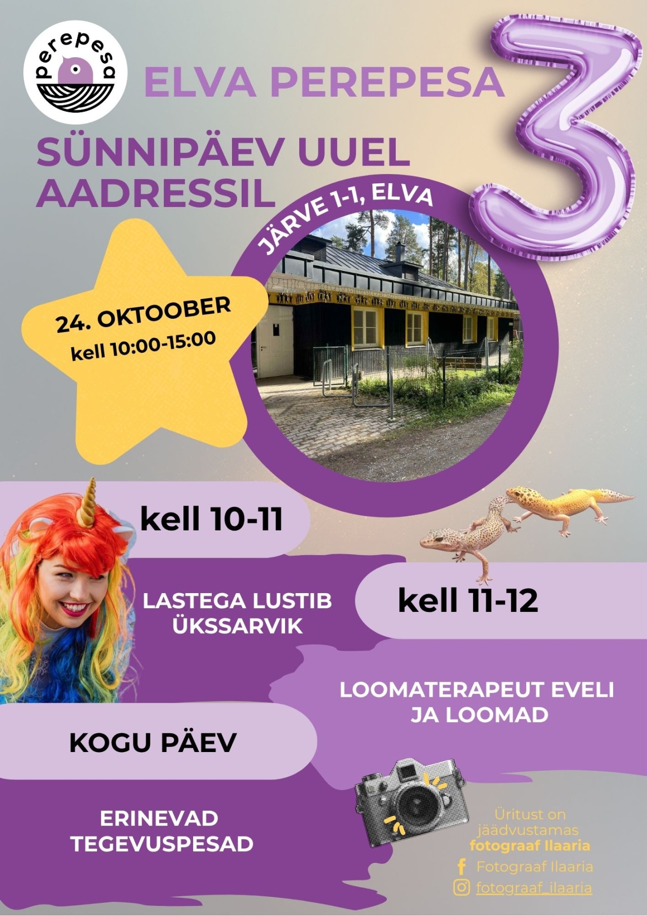 Kutsume Sind 24. oktoobril kell 10:00-15:00 tähistama Elva Perepesa kolmandat sünnipäeva!