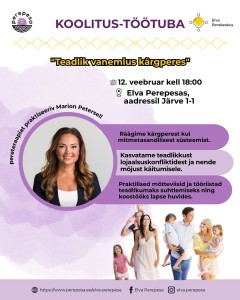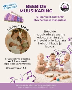Beebide liikumishommik 13.02 Koolitus-töötuba " Teadlik vanemlus kärgperes" Beebide liikumishommik 06.02 Hommik mänguterapeudiga Kohvihommik- lasteraamatu "Surma saladused" esitlus Koolitus-töötuba "Vanemlus ilma süütundeta" Beebide muusikaring Otsime oma tiimi uut mängutoa juhendajat-koordinaatorit! 1 / 8 lehest (kokku 62 uudist) Edasi