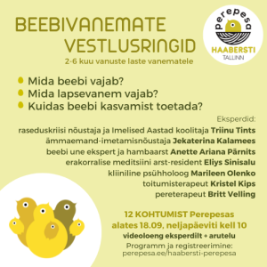 Avatud mängutuba Pereteraapia Juhendatud tegevused 2-aastase lapse kõne ja arengu toetamine Beebivanemate vestlusringid Perekool Koolitused ja vestlusringid Üritused ja töötoad Vanemlusprogramm "Imelised aastad" Beebivõimlemine