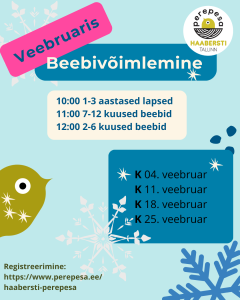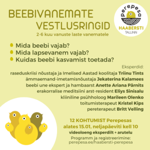 Avatud mängutuba Pereteraapia Juhendatud tegevused 2-aastase lapse kõne ja arengu toetamine Beebivanemate vestlusringid Perekool Koolitused ja vestlusringid Üritused ja töötoad Vanemlusprogramm "Imelised aastad" Beebivõimlemine Toetav arengugrupp 3-7a lastega vanematele