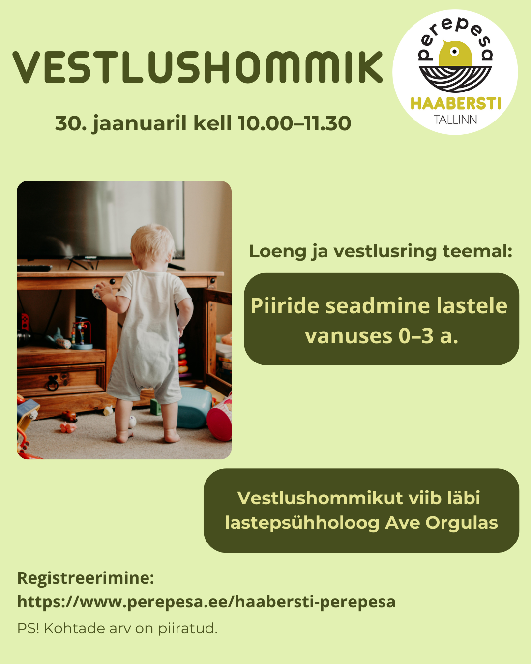 Loeng ja vestlusring teemal: Piiride seadmine lastele vanuses 0–3 a.