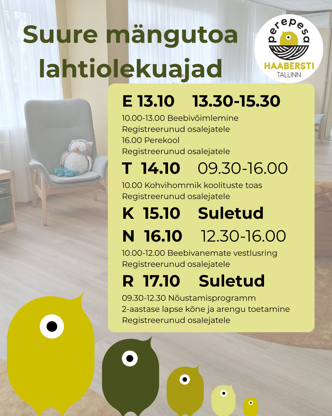 Järgmisel nädalal ootame teid Haabersti Perepesa mängutuppa: