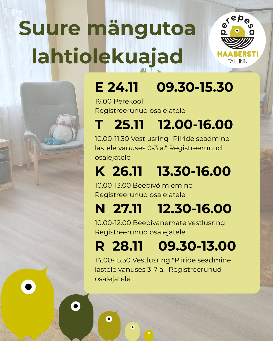 Järgmisel nädalal ootame teid Haabersti Perepesa mängutuppa: