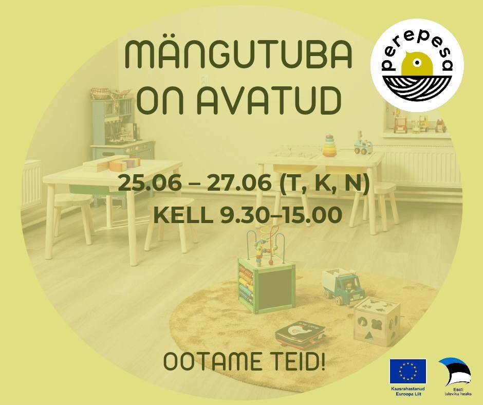 Sellel nädalal ootame teid mängutuppa teisipäeval, kolmapäeval ja neljapäeval kell 9.30-15.00.