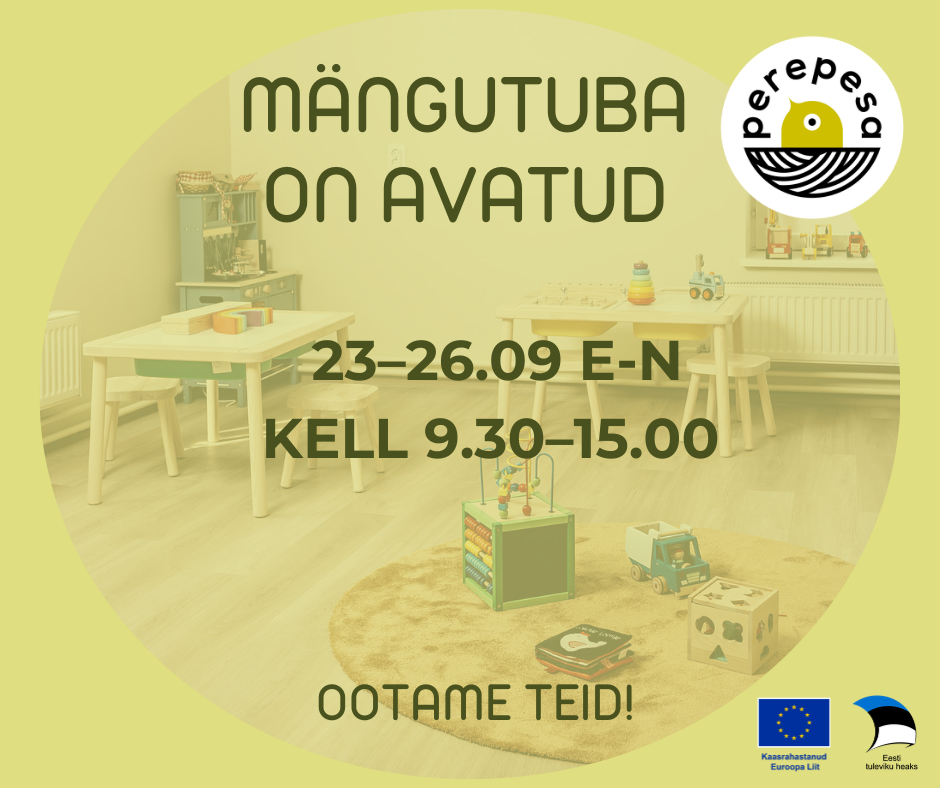Järgmisel nädalal ootame teid mängutuppa esmaspäevast neljapäevani kell 9.30-15.00.