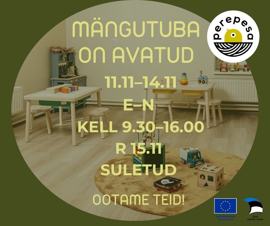 Esmaspäeva hommikul kell 10-11 ainult väike mängutuba.