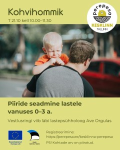 Kesklinna Perepesa lahtiolekuajad 27.10-31.10 21.10 Kohvihommik "Piiride seadmine lastele vanuses 0–3 a." Kesklinna Perepesa lahtiolekuajad 20.10-24.10 14.10 Kohvihommik "Kõne ja suhtlemine eelkoolieas (3–7 a)" 09.10 Suukooli loeng lapsevanematele Kesklinna Perepesa lahtiolekuajad 13.10-17.10 06.10 Muusikaline mänguhommik Mängutoa lahtiolekuajad 6.10-10.10 Tagasi 3 / 13 lehest (kokku 103 uudist) Edasi
