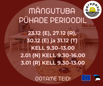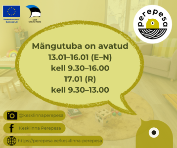Kesklinna Perepesa lahtiolekuajad 13.01-17.01 Kesklinna Perepesa mängutuba on erandkorras 07.01 suletud! Kesklinna Perepesa lahtiolekuajad 6.01.-10.01 Kesklinna Perepesa lahtiolekuajad 23.12-03.01 Kesklinna Perepesa lahtiolekuajad 16.12-20.12 Kesklinna Perepesa lahtiolekuajad 9.12-13.12 Kesklinna Perepesa lahtiolekuajad 2.12-6.12 Kesklinna Perepesa lahtiolekuajad 25.11-29.11 Tagasi 6 / 11 lehest (kokku 82 uudist) Edasi
