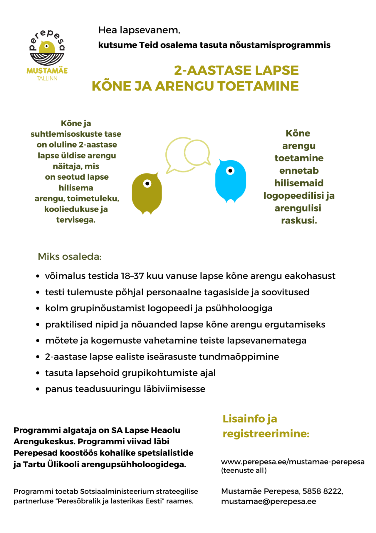 Kutsume Teid osalema programmis „2-aastase lapse kõne ja arengu toetamine”