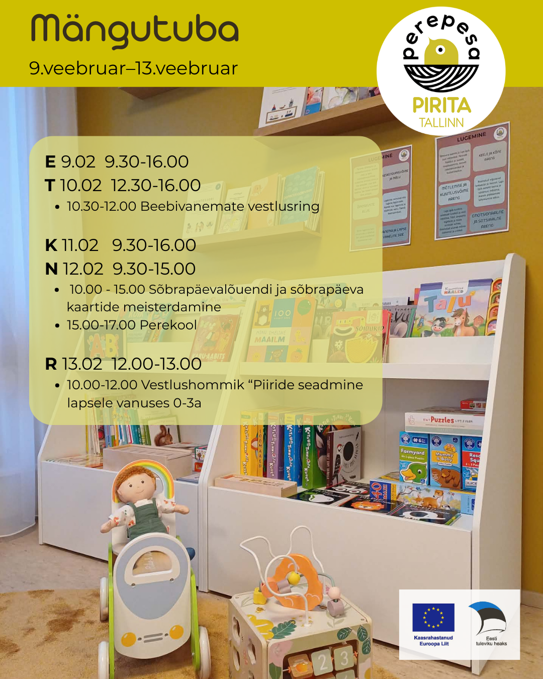Pirita Perepesa alustab järgmisel nädalal mitme uue teenusega, mistõttu on mängutoa lahtiolekuajad tavapärasest veidi erinevad.