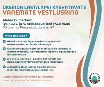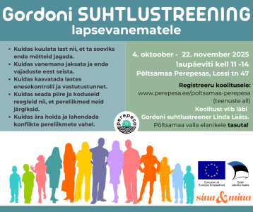 2-aastase lapse kõne ja arengu toetamine Beebikool Beebivanemate vestlusringid Gordoni suhtlustreening lapsevanemale Koolitused ja vestlusringid Lühiajaline lapsehoiuteenus Mängutuba Papside Klubi - isadelt isadele, meestelt meestele! Perekool lapseootel olijatele Pere- ja paarinõustamine PREP-paarisuhtekoolitus Psühholoogiline nõustamine Vaikuseminutid Vanemlusprogramm "Imelised aastad" Üksinda last/lapsi kasvatavate vanemate vestlusring