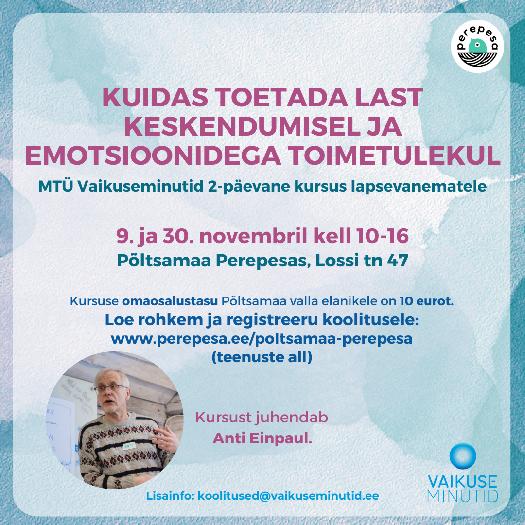 MTÜ Vaikuseminutid kursus lapsevanematele.
