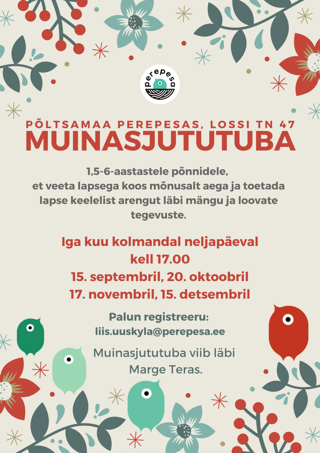 Muinasjututuppa ootame 1,5-6-aastaseid põnne koos vanematega, et veeta lapsega koos mõnusalt aega ja toetada lapse keelelist arengut läbi mängu ja loovate tegevuste.