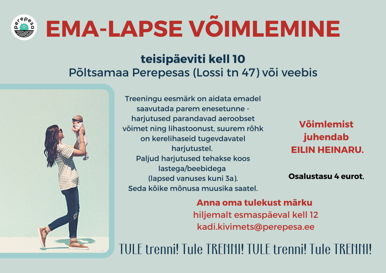 Üle pika aja on jälle võimalus osaleda ema-lapse võimlemises teisipäeviti kell 10 alates 25. jaanuarist.