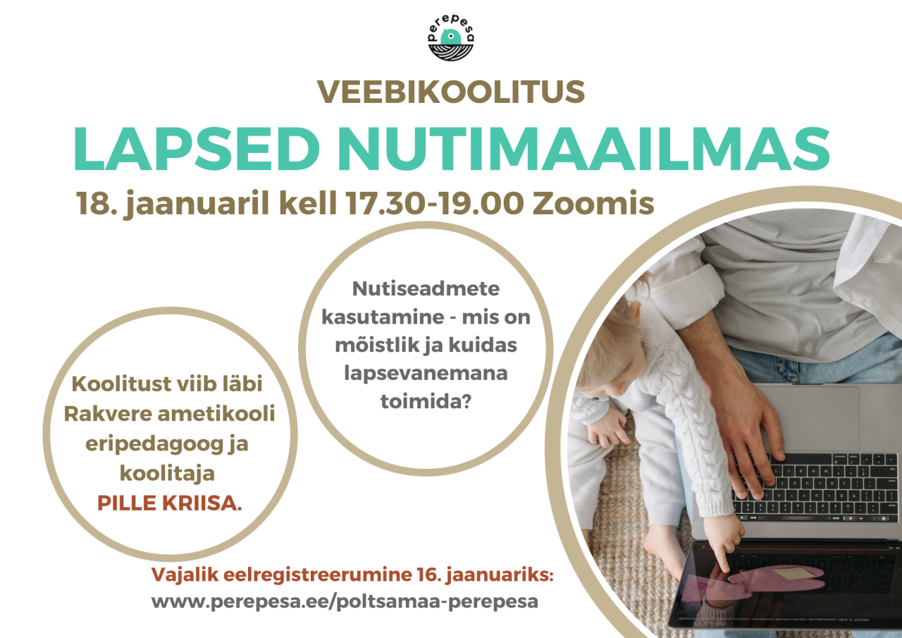 Ootame Sind veebikoolitusele LAPSED NUTIMAAILMAS 18. jaanuaril kell 17.30-19.00.