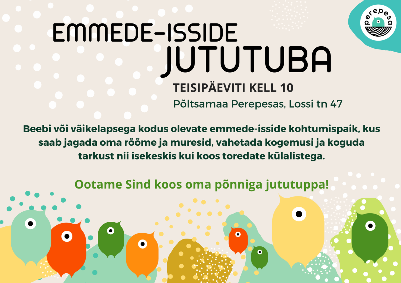 Jututuba on beebi või väikelapsega kodus olevate emmede-isside kohtumispaik, kus saab hubases ja vabas õhkkonnas jagada oma rõõme ja muresid, vahetada kogemusi ja koguda tarkust nii isekeskis kui koos toredate külalistega. Ja seda igal teisipäeval kell 10 Perepesa mängutoas.
