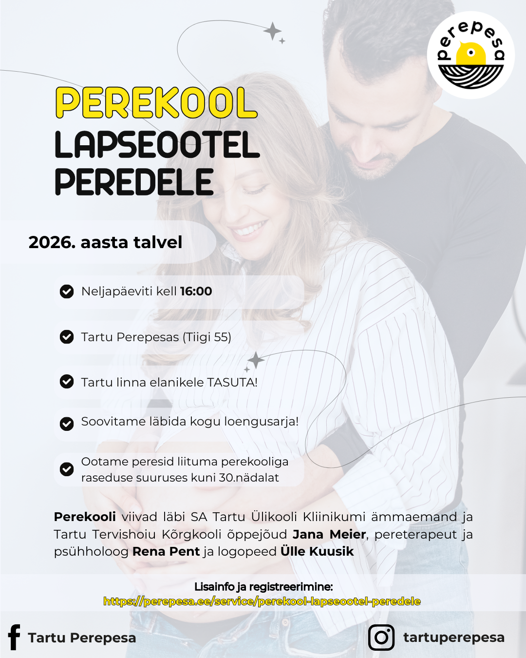 Ootame peresid liituma Tartu Perepesa PEREKOOLIGA raseduse suuruses kuni 30.nädalat - siis on aega kogu loengutsükkel läbida, enne kui beebi ilmavalgust näeb ❤️