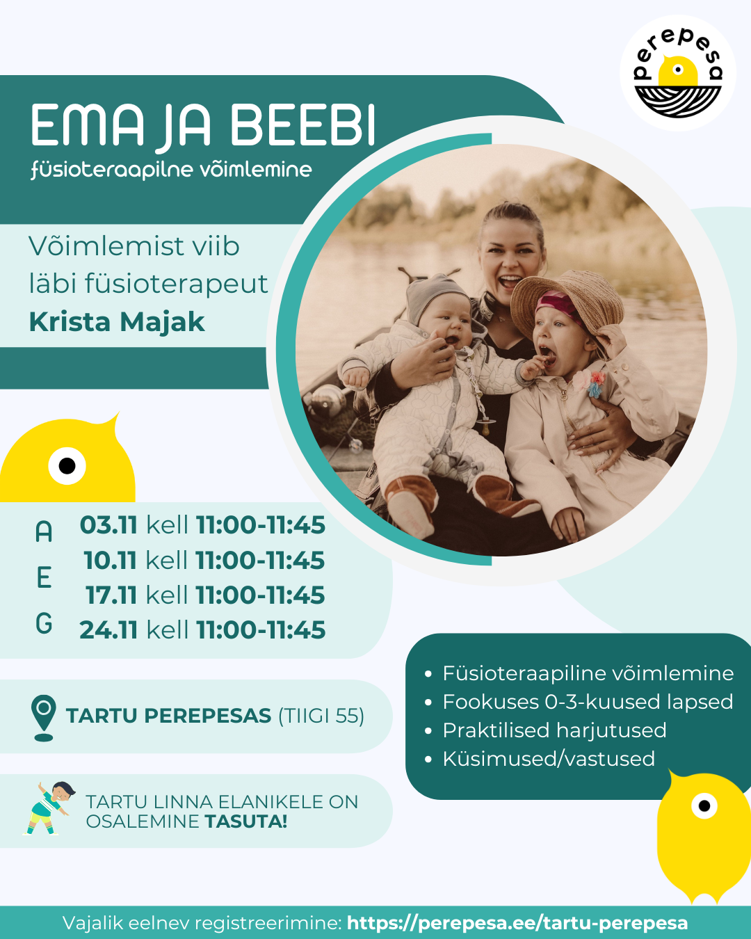 Registreerimine selle lingi kaudu https://perepesa.ee/tartu-perepesa/teenused/ema-ja-beebi-fusioteraapiline-voimlemine