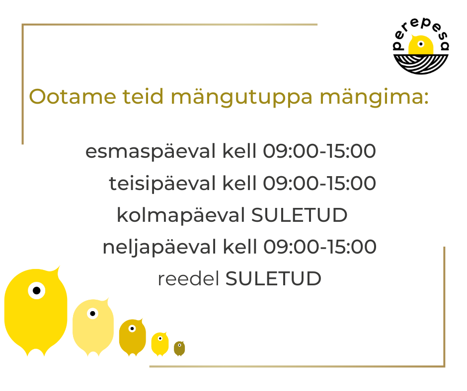 Selle nädala mängutoa lahtioleku ajad! 23.01.2023 Sellel nädalal mängutuba erandkorras kolmapäeval suletud!