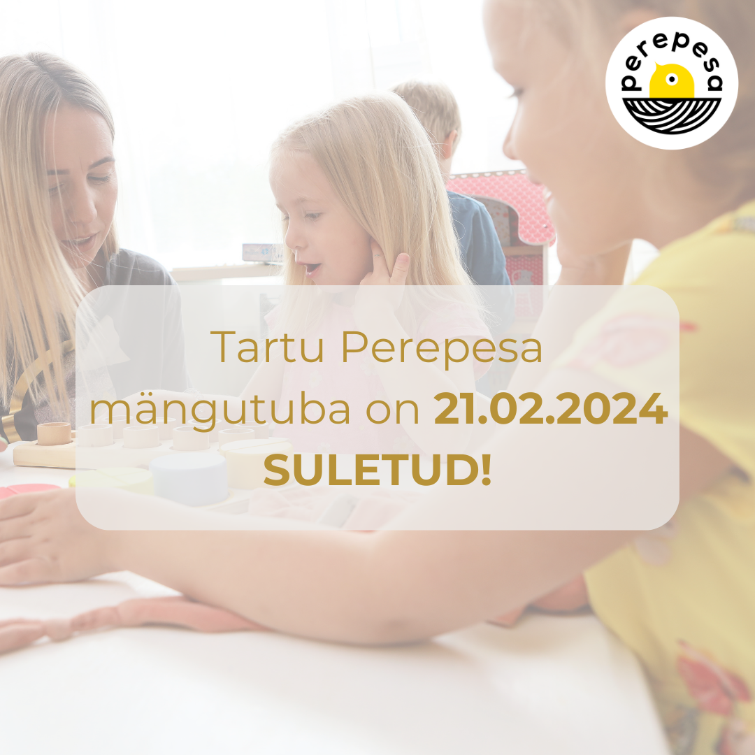 Kolmapäeval, 21.02.2024 on Tartu Perepesa mängutuba SULETUD!