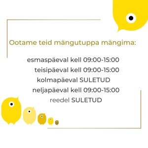 Mängutuba jõuluajal AVAME MÄNGUTOA 21.08 LASTEKAITSEPÄEV KOLMAPÄEVAL, 17.05 on mängutuba suletud! KOLMAPÄEV MÄNGUTOAS NELJAPÄEV MÄNGUTOAS! Beebivanemate vestlusring '' Lapse areng '' KOLMAPÄEVAL, 15.03 MÄNGUTUBA SULETUD! Tagasi 3 / 4 lehest (kokku 29 uudist) Edasi
