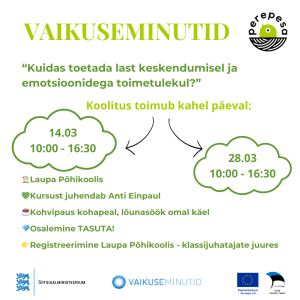 Gordoni suhtlustreening lapsevanematele Perekool - alustab 4.03 kell 18.00 Avatud mängutuba Empside klubi Väikelaste laulu ja mänguring - kolmapäeviti, kell 10.30 Beebide võimlemine - teisipäeviti kell 10.30 Papside klubi- isadelt isadele ja meestelt meestele! Üritused ja töötoad Beebivanemate vestlusring Lastevanemate koolitused/juturingid 2-aastase lapse kõne ja arengu toetamine Lapsehoiuteenus Pere lahendusring Psühholoogiline nõustamine Lükkub edasi - Vaikuseminutite koolitus Vanemlusprogramm „Imelised aastad”