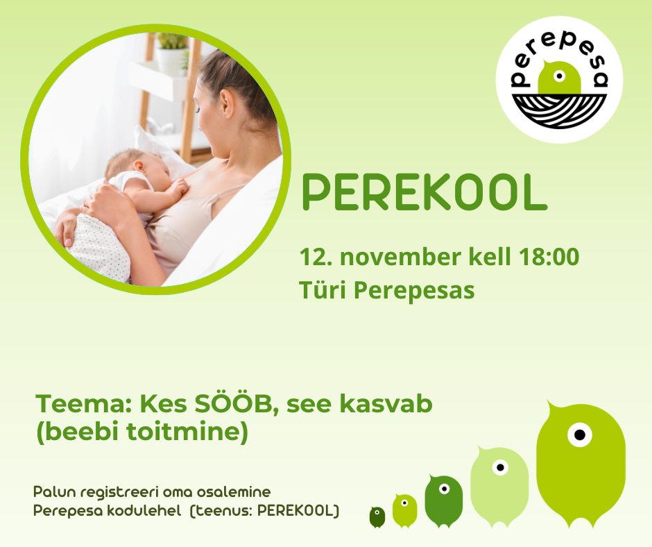PEREKOOL - 12. november kell 18:00 – Kes SÖÖB, see kasvab (beebi toitmine) Broneeri Jäta tagasiside 12. november kell 18:00Kes SÖÖB, see kasvab (beebi toitmine)💚