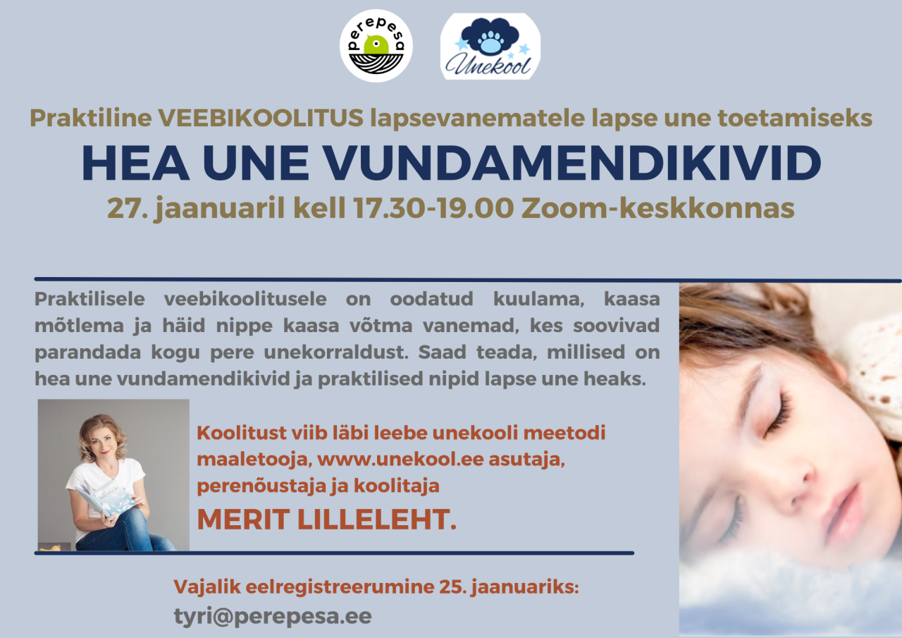 Koolitusele on oodatud kuulama, kaasa mõtlema ja häid nippe kaasa võtma vanemad, kes soovivad parandada kogu pere unekorraldust.