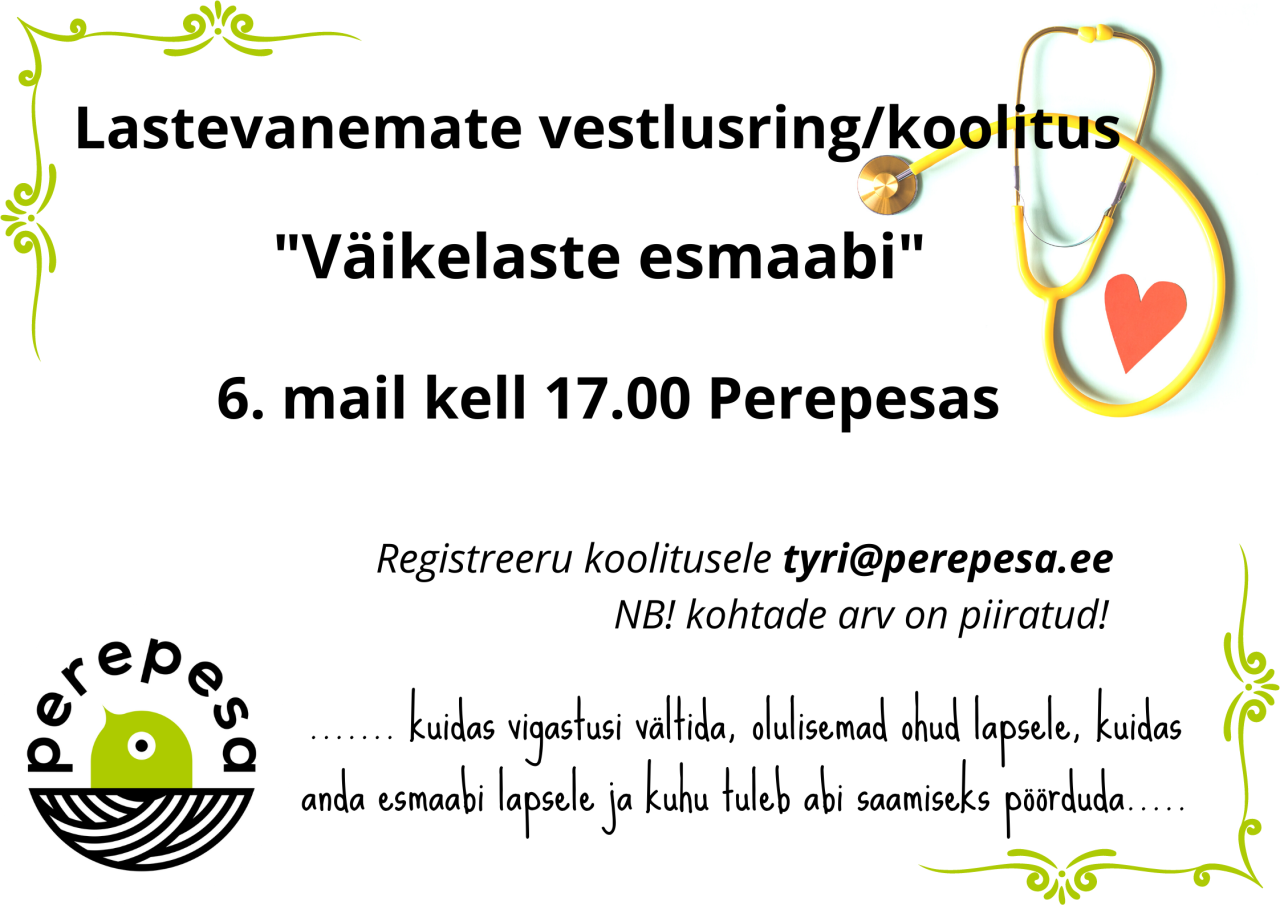 🙏 Reedel, 6. mail kell 17.00 toimub lastevanemate vestlusring/koolitus teemal "Väikelaste esmaabi".