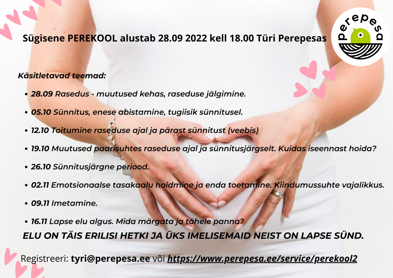 Registreeruda saab ka tyri@perepesa.ee või kodulehelt (teenused - PEREKOOL)