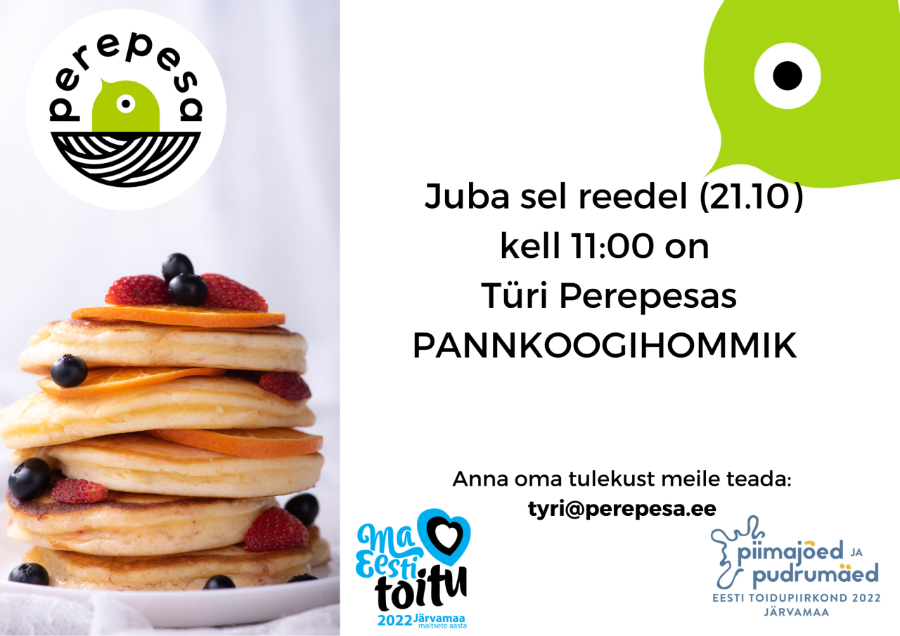 Sel reedel on Türi Perepesas pannukate lõhna tunda kuna emme Helena tuleb meile maitsvaid "Vanaema kohevaid pannkooke" küpsetama