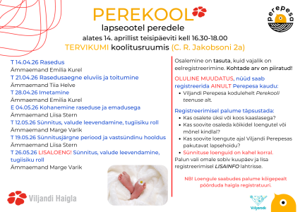 Mängutuba Käputajate ja roomajate mänguaeg Perekool Beebivõimlemine Beebivanemate vestlusring 2-aastase lapse kõne ja arengu toetamine Koolitused ja vestlusringid lapsevanematele Lühiajaline lapsehoid Psühholoogiline nõustamine Raseduskriisi nõustamine Toitumisnõustamine Vanemlusprogramm "Imelised aastad" Üritused ja töötoad