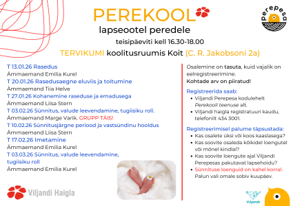 Mängutuba Käputajate ja roomajate mänguaeg Perekool Beebivõimlemine Beebivanemate vestlusring 2-aastase lapse kõne ja arengu toetamine Koolitused ja vestlusringid lapsevanematele Lühiajaline lapsehoid Psühholoogiline nõustamine Raseduskriisi nõustamine Toitumisnõustamine Vanemlusprogramm "Imelised aastad" Üritused ja töötoad Eripedagoogiline nõustamine