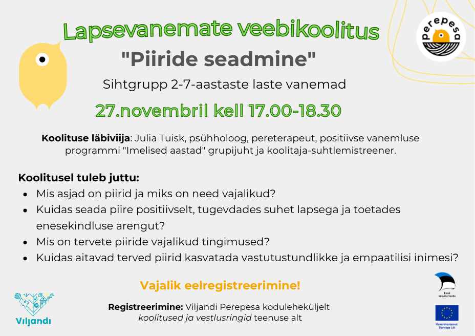 Lapsevanemate veebikoolitus "Piiride seadmine"